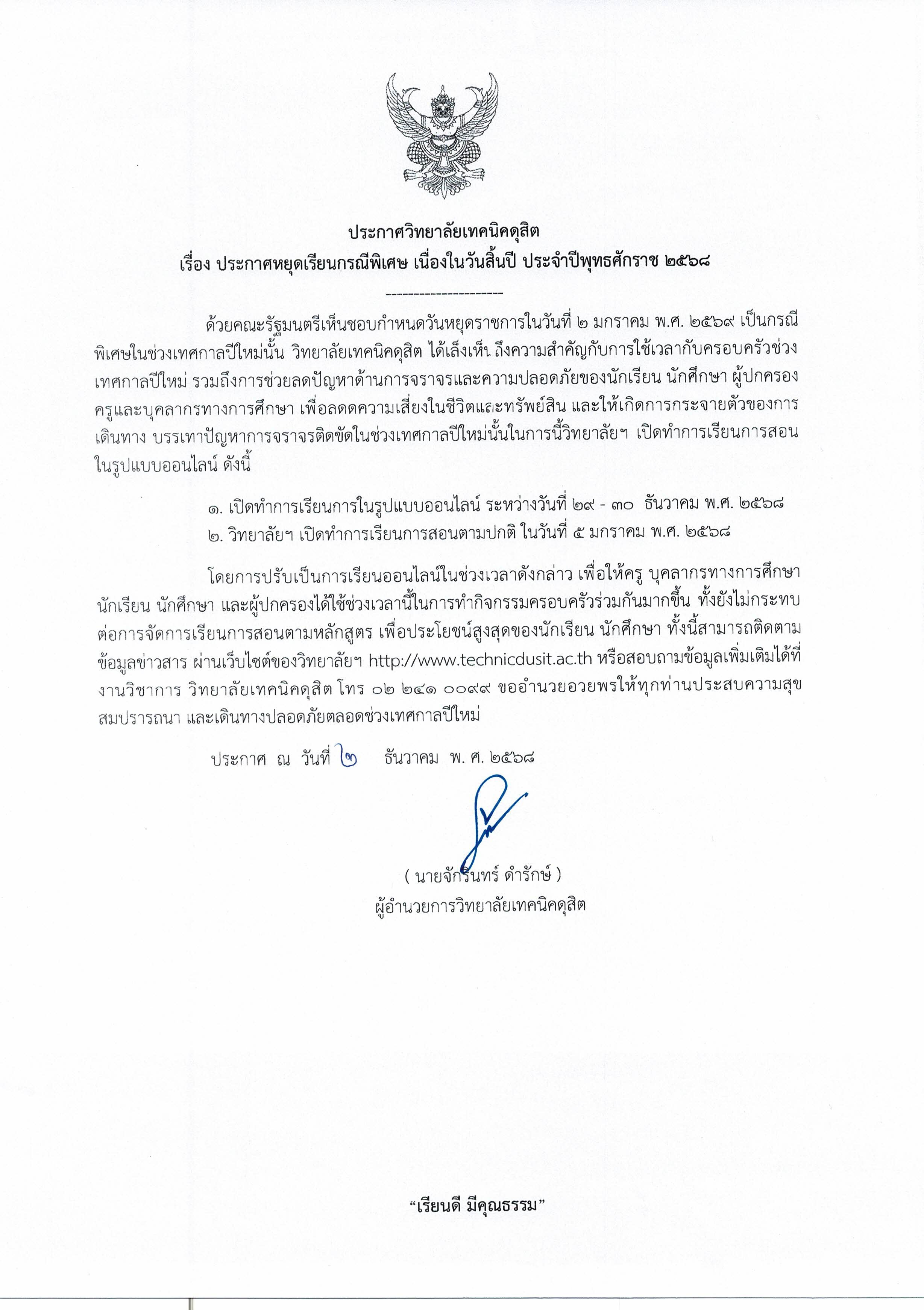 ประกาศวิทยาลัยเทคนิคดุสิต