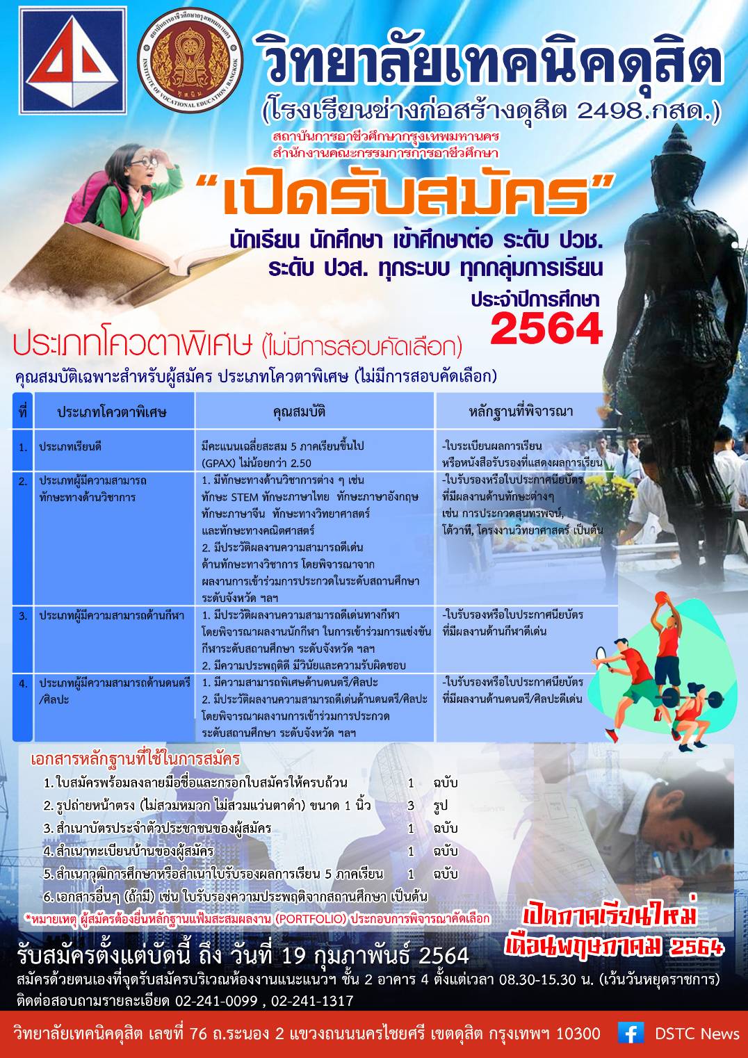 รับสมัครโควตาเข้าศึกษาต่อวิทยาลัยเทคนิคดุสิต