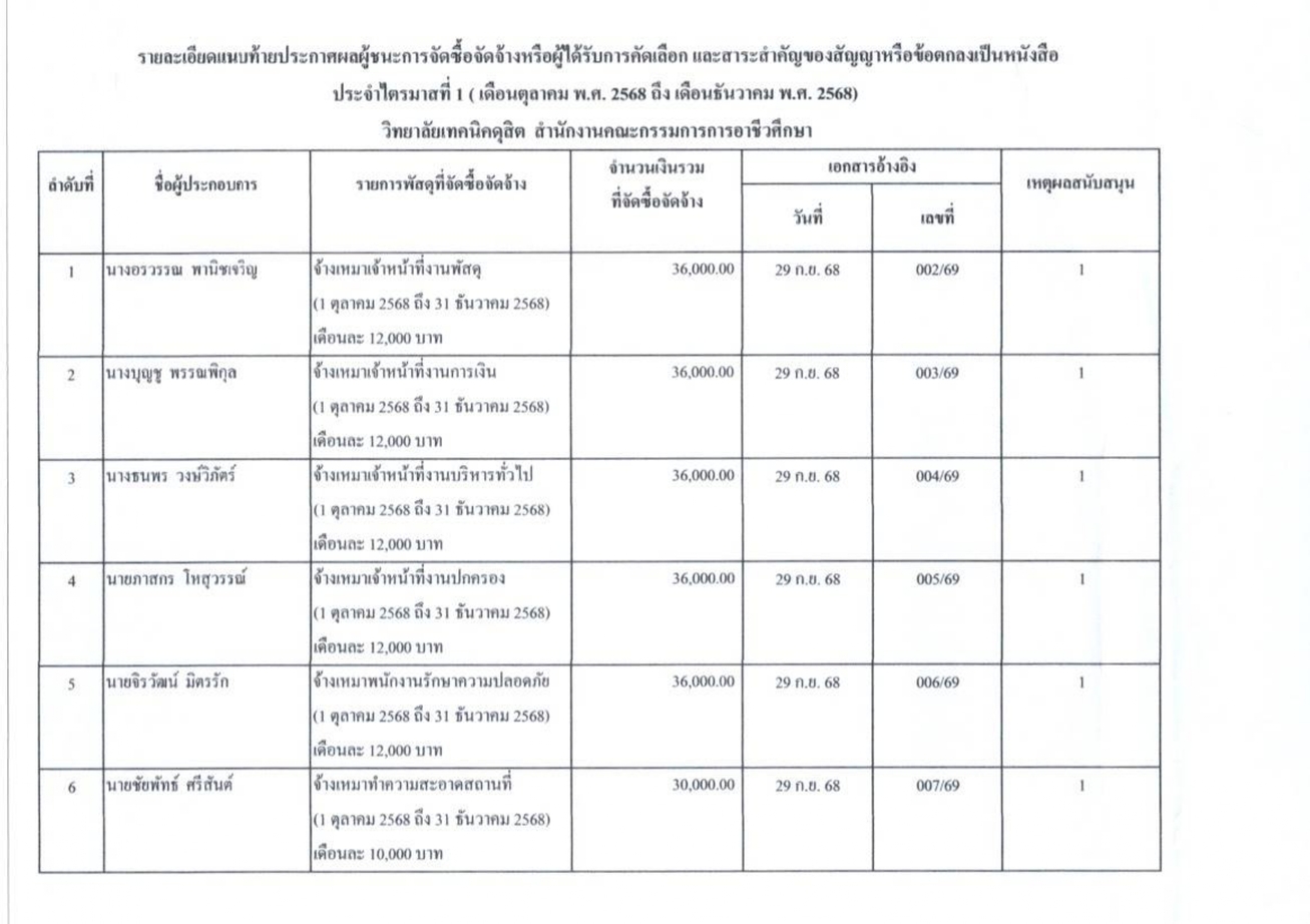 ประกาศและรายละเอียดแนบท้ายประกาศผู้ได้รับการคัดเลือกฯ