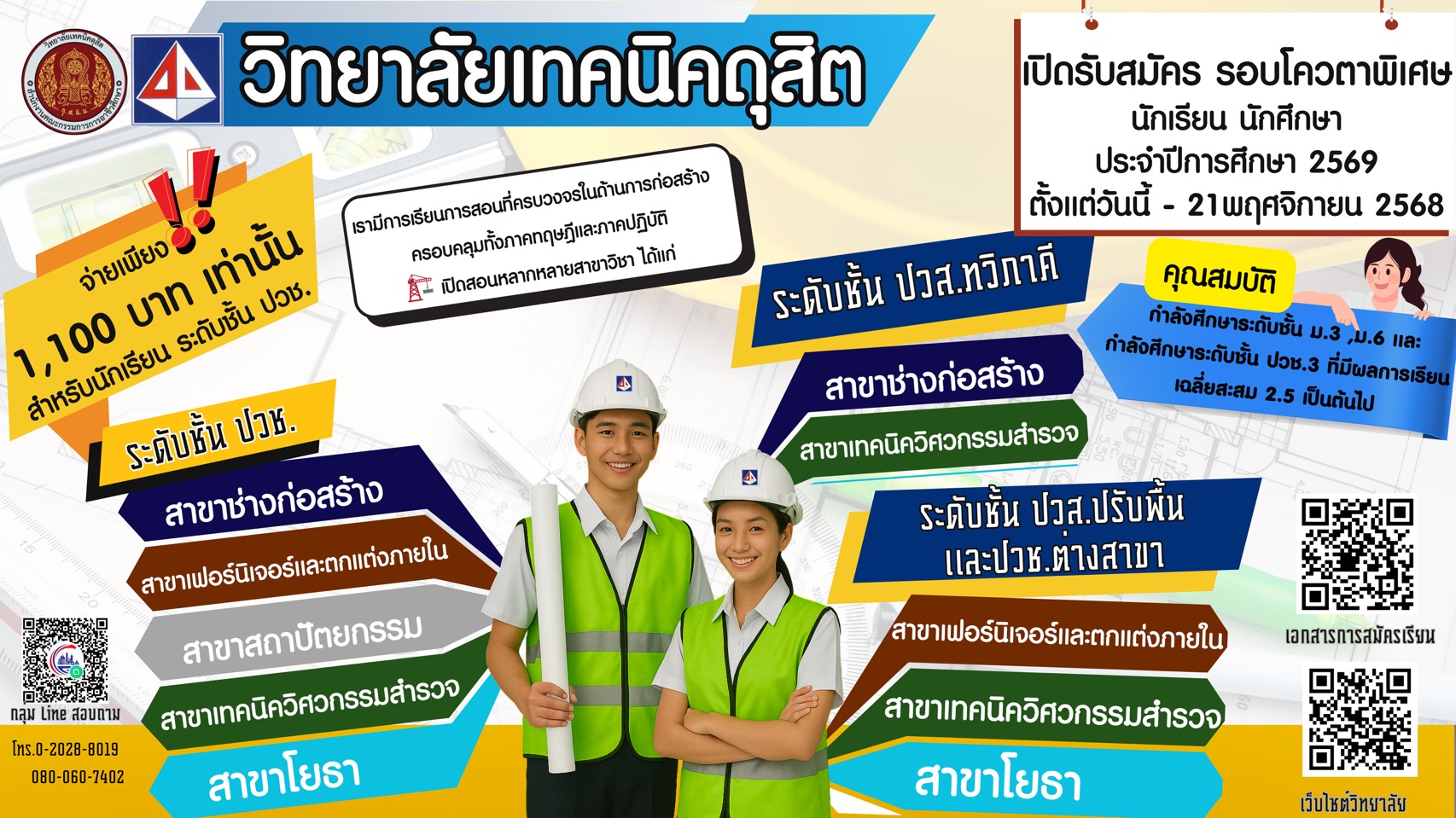 เปิดรับสมัคร รอบโควตาพิเศษ นร.-นศ. ประจำปีการศึกษา 2569 ตั้งแต่วันนี้ - 21 พ.ย. 2568
