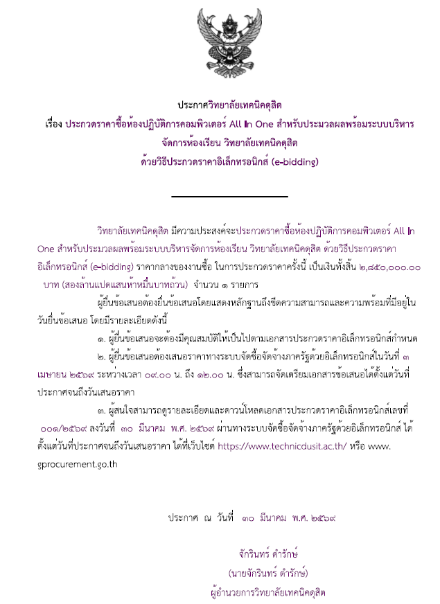 ประกวดราคาซื้อห้องปฏิบัติการคอมพิวเตอร์ All In One สำหรับประมวลผลพร้อมระบบบริหาร